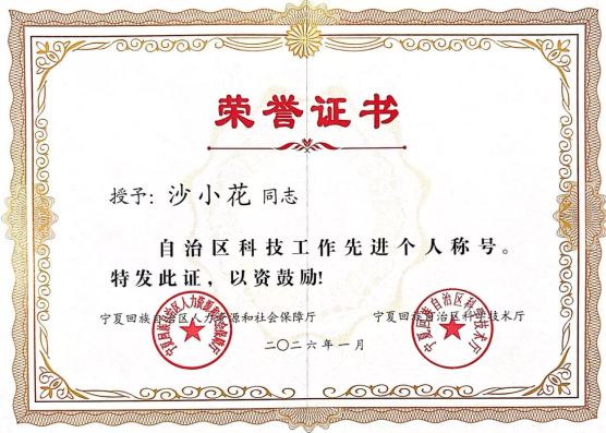 喜报丨草莓视频污污版沙小花老师获评“自治区科技工作先进个人”称号